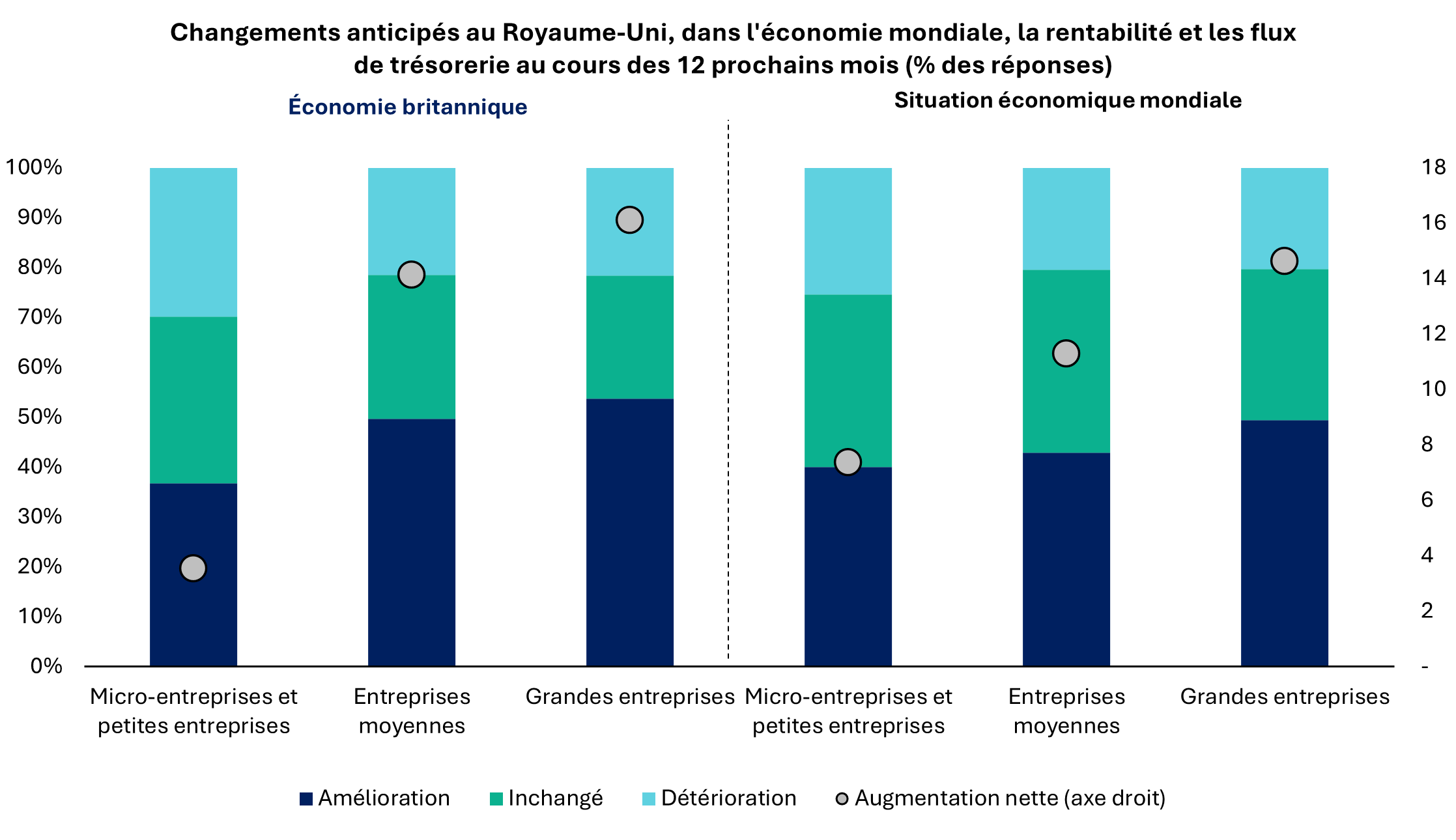 Les micros et petites entreprises restent sceptiques : 66 % d'entre elles estiment que l'économie britannique continuera de se détériorer ou restera inchangée en 2026, et plusieurs secteurs continuent de faire face à des risques structurels, notamment la volatilité des taux d'intérêt, les cybermenaces et les perturbations de la chaîne d'approvisionnement.
