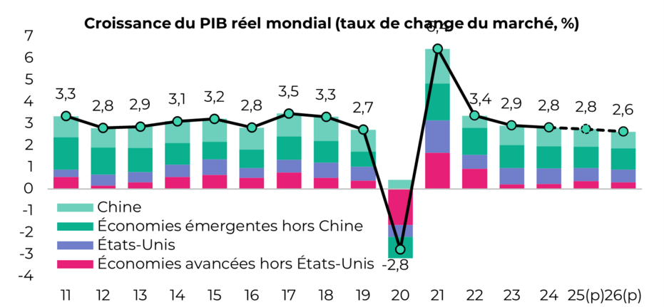 - +2,6% : croissance mondiale prévue en 2026