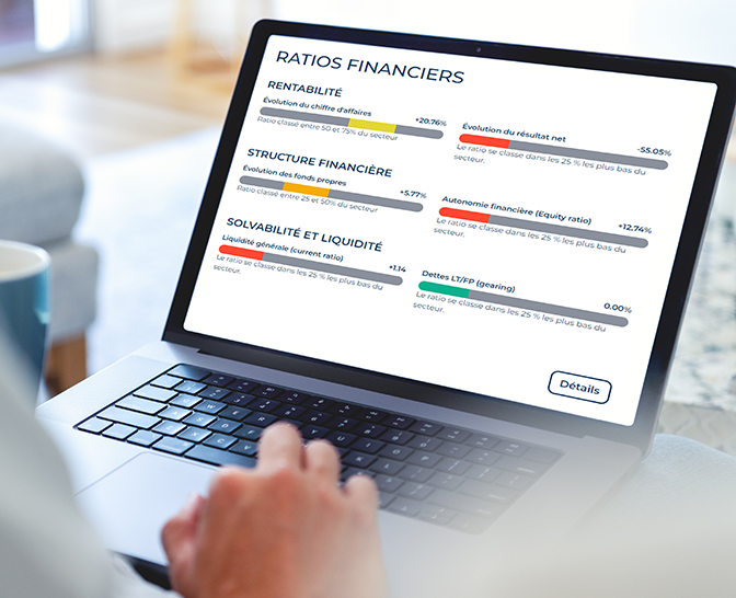 Score de solvabilité financière, Recommandation de crédit maximum, Tendances sectorielles & pays, Suivi du comportement de paiement... accédez à des indicateurs faciles à lire, pour vérifier en toute confiance la solvabilité de vos clients et sécuriser votre trésorerie.